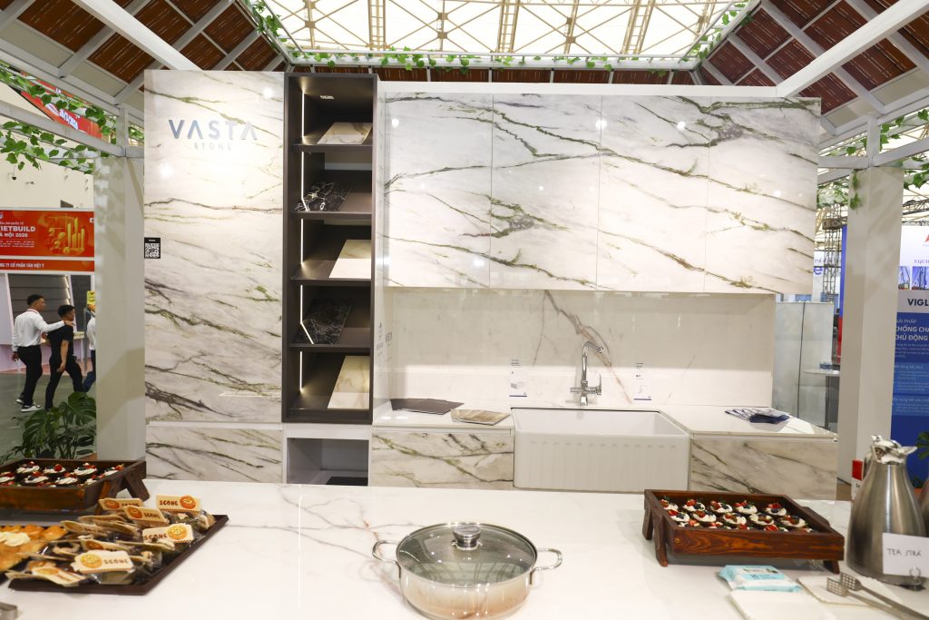 Bằng việc chú trọng vào trải nghiệm thực tế tại Vietbuild Hà Nội 2026 giúp không gian trưng bày của Vasta Stone minh chứng rõ nét khả năng ứng dụng đa dạng của đá nung kết trong kiến trúc. Cách tiếp cận này đồng thời khẳng định năng lực của thương hiệu trong việc cung cấp các giải pháp vật liệu xanh, an toàn và thông minh cho thị trường.